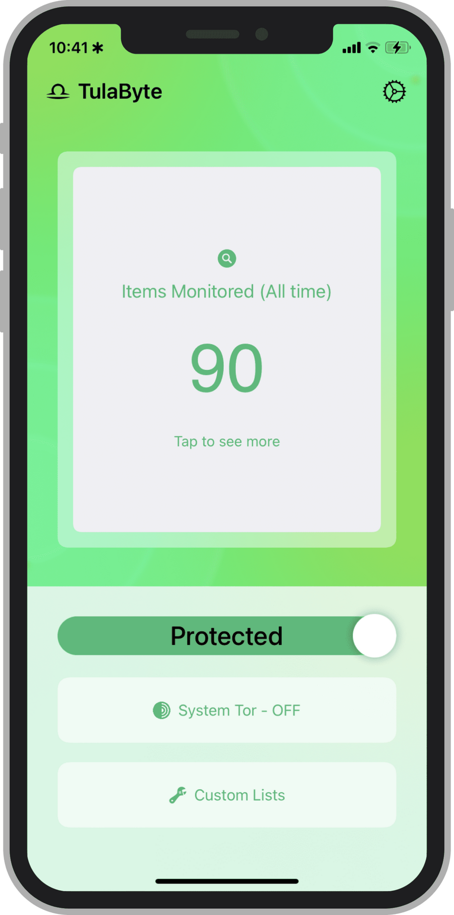 TulaByte acts as a firewall, blocking trackers and badware before information can leave your device.